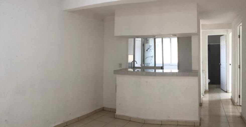 Está muy iluminado, tiene 2 recamaras con closets, cocina integral, barra de cocina, 1 baño completo, zotehuela